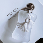 Valaya de Parfums de Marly est un parfum Floral fruité pour femme lancé en 2023. Le nez derrière ce parfum est Quentin Bisch. Les notes de tête sont Aldéhydes, Pêche blanche, Bergamote et Mandarine; les notes de coeur sont Fleur d’oranger, Muguet, Petalia, Nympheal™, Vétiver et Mahonia; les notes de fond sont Musc, Ambroxan, Bois d’Akigala et Vanille.
